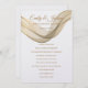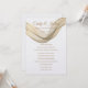 Diese Hochzeitseinladung wird in einem klassischen Layout auf weißem Hintergrund gezeigt, das in einem Papier mit Peal Shimmer Papier gezeigt wird. Wählen Sie Ihr Wunschpapier aus. Grafik des goldfarbenen Schleiers, der über die obere Vorderseite gezogen wurde. Coupels Namen vermischen sich mit der Schleiergrafik in einer goldenen Farbe oben. Text in goldener Farbe unter dem Schleierdrape. Passen Sie dieses Element an, indem Sie den Beispieltext nehmen und stattdessen Ihre Informationen darin einfügen. Bild auf Lager.