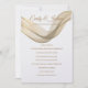 Diese Hochzeitseinladung wird in einem klassischen Layout auf weißem Hintergrund gezeigt, das in einem Papier mit Peal Shimmer Papier gezeigt wird. Wählen Sie Ihr Wunschpapier aus. Grafik des goldfarbenen Schleiers, der über die obere Vorderseite gezogen wurde. Coupels Namen vermischen sich mit der Schleiergrafik in einer goldenen Farbe oben. Text in goldener Farbe unter dem Schleierdrape. Passen Sie dieses Element an, indem Sie den Beispieltext nehmen und stattdessen Ihre Informationen darin einfügen. Bild auf Lager.