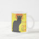 Mattierte Glass Coffee Tasse mit Théophile Alexandre Steinlens Poster Le Chat Noir (1896). Eine schöne schwarze Katze sitzt neben französischem Text und wirbt für eine Kabarett-Tour. Ein großartiges Geschenk für Fans Vintager Kunst und Jugendstil.