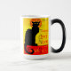 Magische Tasse mit Théophile Alexandre Steinlens Poster Le Chat Noir (1896). Eine schöne schwarze Katze sitzt neben französischem Text und wirbt für eine Kabarett-Tour. Ein großartiges Geschenk für Fans Vintager Kunst und Jugendstil.