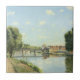 Le Pont du Chemin De Fer, Pontoise. Camille Pissarro. Niedliche Federlandschaft in hellen Farben. Am Ufer eines breiten Flusses gibt es eine Straße und einen großen Baum. Es gibt eine Brücke über den Fluss. Auf der anderen Seite befindet sich eine kleine Stadt. Es gibt kleine Wolken am blauen Himmel. Reproduktion berühmter Kunstbilder im öffentlichen Bereich.