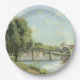 Le Pont du Chemin De Fer, Pontoise. Camille Pissarro. Niedliche Federlandschaft in hellen Farben. Am Ufer eines breiten Flusses gibt es eine Straße und einen großen Baum. Es gibt eine Brücke über den Fluss. Auf der anderen Seite befindet sich eine kleine Stadt. Es gibt kleine Wolken am blauen Himmel. Reproduktion berühmter Kunstbilder im öffentlichen Bereich.