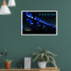 Das Foto von Le Pont du Gard - eine alte römische Wasserbrücke, die den Gardon River in Vers-Pont-du-Gard, Frankreich, überquert - leuchtet mit blauem Licht.