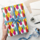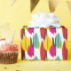 Das reizvolle Muster abstrakter Blätter und Äste in verschiedenen Farbtönen, das diese Geschenkpackung schmückt, erinnert an das angesagte Mittelalter Moderne Design aus den 1950er und 1960er Jahren. Die Leaf-Farben in diesem Design sind gelb, aquamarin, rot-orange und magenta mit braunen abstrakten Zweigen.