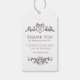 Handgezeichnet Blatt zeichnend Kunst mit Herz-Monogramm in einer klassischen monotonen schwarzen Tinte auf einem weißen Hintergrund Hochzeit danke Ihnen für Tags. Einfache Blattgestaltung mit eigenen Monogramm-Initialen, Braut- und Bräutigam-Namen, Dankeschön-Nachricht und Hochzeitsdetails. Weitere Farben und passende Elemente sind verfügbar. © Original Blatt zeichn und Design von Sarah Trett für www.mylittleedenweddings.com auf Zazzle.