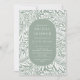 Modernes Blatt- und Blume-Muster mit einem stilvollen ovalen Rahmen, der Ihre Party-Informationen in Weiß und Grün umrahmt.