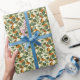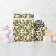 Hübsches Blatt Geschenkpapier in Grüntöne und Orangen.