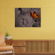 Es ist ein farbiges Leaf in einer Schwarz-Weiß-Landschaft mit einem Mountain Lion Footprint und einigen Pine Needles, um seine Firma Behalten - auf einem Poster!