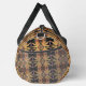 Das Originalmuster von HomeWare auf diesem Duffel-Beutel wurde aus einem Originalfoto eines Blattes auf einer jungen Korallenhalle gefertigt. Nach einer Farbänderung sehen die Blätter rötlich aus, und die Blume-Töpfe sind lila geworden, alles vor dunkelbraunem und grünem Hintergrund. Im Muster wird die lila Lavendelfarbe im Foto als lineare Rahmen zwischen den Blätter verwendet.