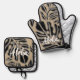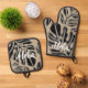 Leaf Tiki Black Hawaiian Tropical Ofenhandschuh & Topflappen-Set