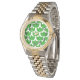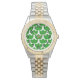 Diese Frauenuhr hat ein skandinavisches Design von Blatttrios, das sich durch das Design in drei Grüntönen wiederholt.