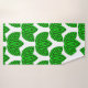 Dieses Handtuch-Set ist mit einem kalkgrünen Waschlappen, einem grünen Handtuch und einem Badehandtuch mit skandinavischem Design aus Blatttrios ausgestattet, das in drei Grüntönen wiederholt wird.