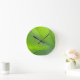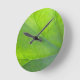 Eine Wanduhr mit naturgetreuem Motiv mit Nahbild eines Blattes.