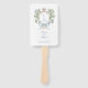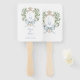 Dieser handgeführte Mono-Fan eignet sich perfekt für eine Hochzeit an einem warmen Tag. Dieses Programmdesign hat ein Aquarellblatt-Wappen, das Ihr Monogramm umgibt, und enthält grundlegende Ereignisdetails. Dieses Design stimmt mit anderen Designs aus der Monogram-Hochzeitskollektion des Leaf-Wappen ab