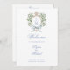 Dieses Programmdesign hat ein Aquarellblatt-Wappen, das Ihr Monogramm umgibt, und enthält die Reihenfolge der Veranstaltungen und die Einzelheiten des Brautparty. Dieses Design stimmt mit anderen Designs aus der Monogram-Hochzeitskollektion des Leaf-Wappen ab
