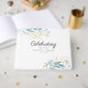 Elegantes, grün-blau-goldenes, weitläufiges Gästebuch "Feier des Lebens". Eleganter, hübscher Schriftart mit Handschrift.