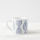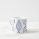 Genießen Sie Ihren Kaffee mit unserem Leafy Lattice Espresso Cup. Die Tasse ist mit einem stilvollen Blumenmuster aus blauen Blätter auf einem knalligen, weißen Hintergrund geschmückt und verleiht Ihren Kaffeemaschinen eine moderne Touch. Ideal, um Ihren Lieblingspresso zu genießen, kombiniert es modernes Design mit praktischer Funktionalität und macht es zu einer eleganten und raffinierten Ergänzung Ihrer Kaffeesammlung.