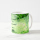 Diese hübsche, weitläufige Tasse lädt Sie ein, in eine Welt des Friedens und der Ruhe einzutauchen. Ahorn-Blätter umrahmen das Bild und führen zu einer Waldlandschaft in Gelb, Weiß und Waldgrün. Anpassen des Textes für Ihren besondere Anlass.