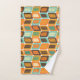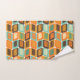 Dieses Handtuchhandtuch-Set ist in einem modernen Design aus der Mitte des Jahrhunderts angeordnet, das abgerundete Rechtecke seitlich orientiert. Die Rechtecke sind in Linien gehalten, die alle in den 70er Jahren gehalten wurden.