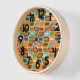 Diese Wanduhr hat ein modernes Design von abgerundeten Rechtecken, die seitlich ausgerichtet sind, mit schiefen Rechtecken aus Linien, die alle in den Farben der 70er Jahre gefertigt wurden.