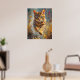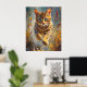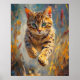 This vibrant artwork captures the raw energy and elegance of a Bengal cat mid-leap. With its striped coat, piercing green eyes, and extended paws, the feline bursts forward through a swirl of earthy tones and expressive brushstrokes. The abstract background enhances the sense of motion, making this piece a celebration of feline agility and wild spirit. Perfect for cat lovers, modern art collectors, or anyone who appreciates dynamic animal portraits.