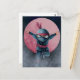 Warrior Ninja mit dunkelblauem Outfit mit einem roten Kopfband und einem roten Sash, der durch die Wolken vor einem blutroten Mond auf einem im dunklen Nachthimmel springen.