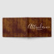 Ein brauner Lederhintergrund aus Imitaten hat einen stylischen, fett und dekorativen weißen Schriftart mit den Worten "Anwesenheitsliste" und einer Vorlage für das Datum Ihrer Veranstaltung oder Veranstaltung.