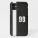 Einfaches und klassisches Black Leather & White Striped Sports Team Jersey nummerierte iPhone Case. Ideal für Väter, Brüder, Grads und Freunde. Anpassen mit einem Namen und/oder Jersey-Nummer.