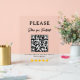 Encourage customer feedback with this “Leave a Review” QR code business display sign. Perfect for retail shops, restaurants, salons, and offices, it allows guests to quickly scan and submit reviews, boosting your online reputation. Sleek and modern, this acrylic sign adds a professional touch while promoting positive engagement and brand trust.