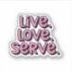 Lebe. Liebe. Serve. Pink Pickleball Aufkleber
