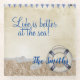 Feine farbige Illustration einer Sandstrandszene in festlicher Stimmung....Feiern die Großartigkeit des Lebens an der Küste! Passen Sie Ihren Wünschen an! Finden Sie passende Artikel im Shop.