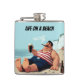 Leben am Strand, Mann rauchen Zigar und trinken Bi Flachmann