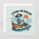 Eine spielerische Grußkarte mit einem Skelett auf einem Boot mit sonniger Kulisse und dem Satz "Living the Dream". Ideal für Bootsfahrer, Strandliebhaber, Rentner und alle, die ein Gefühl von Spaß über die Abenteuer des Lebens haben. Ein tolles Geschenk für Segler, Fischer und diejenigen, die lustige ironische Küstenvibes genießen.