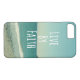 Live by Faith Bible Verse iPhone Fälle. Aqua Strand Ozean Hintergrund mit Retro-Filter mit der inspirierenden Schrift von 2 Korinthen.