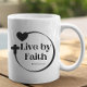 Bibelschrift aus römischer 1:17, "Leben durch Glauben", mit schwarzem Herz und Kreuz-Design. Die perfekte Tasse, um Ihre Kollektion zu ergänzen oder als Geschenk für diesen besonderen Gläubigen in Ihrem Leben zu geben.