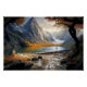 Mach dich bereit, in ein natürliches Paradies transportiert zu werden, wo Erde, Wasser und Himmel in perfekter Harmonie verschmelzen! Dieses majestätische Tal wird von imposanten Bergen dominiert, deren Flächen mit Schnee und rauen Felsen bedeckt sind, während ein kristallklarer See die goldenen Farbtöne des Herbstes widerspiegelt. Ein gewundener Fluss schlängelt sich durch das Ufer, umgeben von Steinen und rustikaler Vegetation, und eine einsame Figur beobachtet den Horizont und symbolisiert die Verbindung des Menschen mit der Natur. Lebendige Farben und reiche Texturen schaffen eine mystische und inspirierende Atmosphäre – perfekt für alle, die die Essenz von Freiheit und wilder Schönheit in ihr Zuhause bringen möchten!