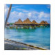 Friedliche Bungalows über Wasser auf den Tuamotu-Inseln.