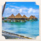 Friedliche Bungalows über Wasser auf den Tuamotu-Inseln.