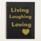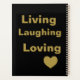 Inspiration "Leben, Lachen und lieben" schwarz und gold Planer. Die schwarze Hintergrundfarbe kann vom Kunden geändert werden. Von celeste@khoncepts.com