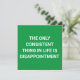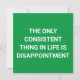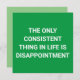 "Das Einzige, was im Leben konsistent ist, ist Enttäuschung." ist ein lustiges, nüchternes, demotivierendes Zitat hier auf grüner Basis.