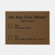 Leben Sie hier? Fußmatte. Stellen Sie Ihre Art der Persönlichkeit durch eine einfache Fußmatte zur Schau, der nicht nur die geistreichen Blicke aber auch Ihre unerwünschten Gäste weit weg behält.