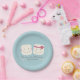 Leben S'more Spaß-Eibisch-Freund-blauer Hintergrund-Papier-Teller.