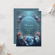 Versetzen Sie Ihre Gäste mit dieser atemberaubend ätherischen botanischen Anordnung in einen mondbeschienenen Garten. Am Fuß sitzt eine große, lebendige blaue Protea-ähnliche Blüte, deren Blütenblätter mit einer leuchtenden, samtigen Textur versehen sind. Sie ist umgeben von einem üppigen, symmetrischen Kranz aus rosa Distel-Sprösslingen, weichen lila Blütenknospen-Clustern und gefiedertem bronzefarbenem Laub. Ein leuchtender, kreisförmiger Heiligenschein beleuchtet den tiefen, stimmungsvollen Teal-Hintergrund, der zart mit schimmerndem Sternenstaub gepunktet ist. Diese Hochzeitseinladung ist eine erste Wahl für eine himmlische Zeremonie, eine hochkarätige Fantasy-Feier oder ein modernes Abendgarten-Event.