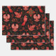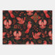 Lebendige rote Vögel mit detaillierten Mustern sind vor einem schwarzen Hintergrund angeordnet, umgeben von aufwendigen Blumen- und Blattdesigns, wodurch eine lebendige, ornamentale Szene entsteht.