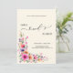 "Machen Sie Ihre Hochzeitseinladung mit diesem exquisiten Design, das lebendige Kunstfertigkeit mit moderner Zweckmäßigkeit verbindet, wirklich unvergesslich. Die Vorderseite dieser Einladung zeigt eine atemberaubende Kaskade von Fuchsien-Wasserfarben-Blumen, die elegant auf einem weichen cremefarbenen Hintergrund erblühen. Jeder zarte Strich und jede subtile Spritzer verleihen eine künstlerische, ätherische Qualität und setzen den Ton für romantische Eleganz an Ihrem besonderen Tag. Ihre Namen, 'James und Allison', werden in einer anspruchsvollen Mischung aus fetten und fließenden Schriftarten schön präsentiert, perfekt ergänzt durch klassische Serifenschrift für alle wichtigen Veranstaltungsdetails.
