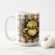 Lebendige gelbe Blume mit Herbstblättern Kaffeetasse