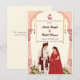 "Feiern Sie eine Vereinigung von Traditionen mit dieser atemberaubenden indisch inspirierten Hochzeitseinladung. Dieses Design zeigt aufwendige Mandala-Muster und Paisley-Motive, die das reiche kulturelle Erbe des Subkontinents widerspiegeln. Vor einem tiefen, königlichen Hintergrund mit schimmernden goldenen Akzenten eingefügt, fängt das Layout die festliche Stimmung einer großen indischen Hochzeit ein. Mit einer Mischung aus traditioneller Ästhetik und modernem Luxus ist diese Einladung eine majestätische Hommage an eine zeitlose Liebesgeschichte."
