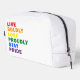 Live Bolly Liebe stolz Bleibe Pride Dopp Kit Kosmetik / Toilettenbeutel Design in moderne Typografie, die "LIVE BOLDLY LIEBE PROUDLY BLEIBE PRIDE" in einem einfachen, aber sauberen minimalistischen Design. Einfaches Design in Pride Regenbogenfarben, das für jeden gut funktioniert.