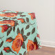 Lebendige orange und rote Rosen auf einem hellen mintgrünen Hintergrund mit kontrastierenden warmen und kühlen Farben
