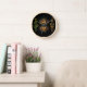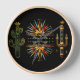 Vibrant Pattern Cactus Southwestern Clock mit schwarzem Hintergrund und farbigem Sand. Sie können die saguaro oder sahuaro Kaktus Pflanze und Muster Bilder von diesem lebhaften bunten südwestlichen Wüste Pflanze und Amerikanische Ureinwohner Thema ändern. Großartiges Geschenk für diejenigen, die Amerikanische Ureinwohner Wüstenmuster und Bilder.